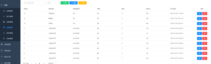 4、動物管理:用戶可以添加動物分組、動物數量等添加和刪除